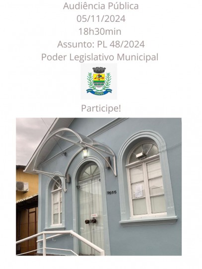 Ler notíciaAudiência Pública Dia 05/11/2024 18:30min Assunto: PL 48/2024 Poder Legislativo Municipal Participe!